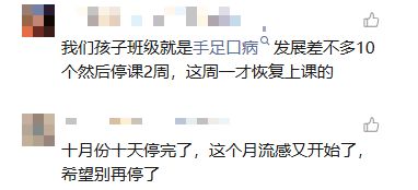 网络上不少孩子家长纷纷表示,自家娃的班级也因呼吸道传染病停课了,表示这波“来势汹汹”。