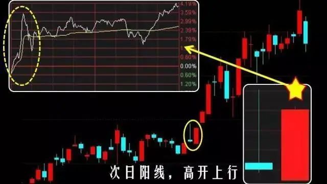 3、仙人指路K线后,次日阳线,高开上行。如果仙人指路K线成立,当日K线尾盘回落可能只是多方主力进攻前的试探,那么次日报收阳线的可能性很大。如果第二天的K线走势能在开盘15分钟内就有所拉升,或者直接高开高走,表现出非常强烈的上攻意图。那么,仙人指路之后,第二天股价走出长阳线的概率会有所增加,并且,后市股价跳空上涨、加速上涨的可能性也较大。
